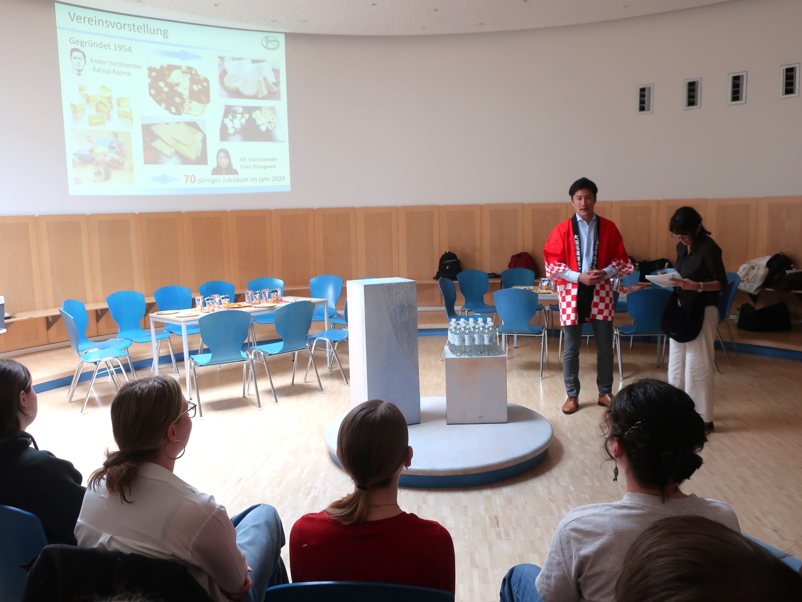 6月7日(金)には、今回のメイン行事である現地学校との交流事業を行ってまいりました。最初に地元の小学校であるSchule Bahrenfelder straße(バーレンフェルダーシュトラーセ小学校)を訪ねました。ドイツの小学校は一般的に1年生~4年生までとなっており、今回は最上級生である4年生のクラスと交流してまいりました。まずは通訳を交えて、糸田川理事長の挨拶から始まり、その後子どもたちに向けて、スライドで青年クラブや日本のお菓子の紹介、お菓子クイズを行いました。また学校側からの希望で、日本文化の一つである折り紙を行い、クラブ員が手伝いながら、皆で楽しく鶴や兜を折りました。最後に日本から持ってきたお菓子を一人ひとりに配り、1校目の訪問は終了いたしました。午後からは、同じく地元の小中高一貫校であるWichern Schule(ヴィヘルン校)を訪れ、高校の日本語クラブの子どもたちと交流してまいりました。1校目と同じく、理事長挨拶やスライドでの紹介、クイズを終え、その後、こちらの学校ではお菓子の食べ比べを行いました。ドイツの子どもたちが慣れ親しんだ様々なお菓子を用意してくれており、それらを一つひとつ紹介してもらいながら試食しました。日本のお菓子とよく似たものもあれば、日本ではあまり食べたことのないような味のお菓子もあり、菓子メーカーを営む者として、とても新鮮で貴重な経験となりました。その後、こちらが準備した日本のお菓子を子どもたちに振舞い、日本のお菓子の美味しさを皆に体験してもらいました。子どもたちは日本のお菓子や文化についてとても興味を持っており、お互い言語が通じない中でも、片言の英語や日本語を用いて積極的にコミュニケーションをとってくれました。こちらでも、最後に一人ひとりにお菓子を配り、2校目の訪問も無事終了いたしました。
