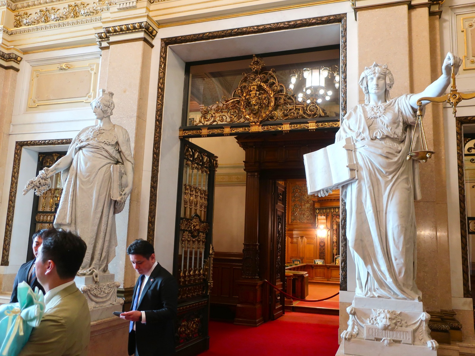 まず6月5日(水)に、ハンブルク総領事館を訪ね、在ハンブルク日本国総領事である戸田様と面会いたしました。今回ご協力いただいたことに感謝の意をお伝えするとともに、当クラブの紹介や今回の訪問の主旨についてご説明いたしました。その後、戸田総領事ご同行の下、ハンブルク市庁舎に訪れ、ニーンシュテット・ハンブルク州首相府国際関係総局長を表敬訪問いたしました。100年以上の歴史ある市庁舎は大変美しく、ヨーロッパの宮殿さながらの豪華な内装はとても市庁舎とは思えないような雰囲気でした。ニーンシュテット総局長との懇談は、終始和やかな雰囲気の中行われ、菓子を中心とした日独の食品事情について幅広く意見交換を行いました。また最後に、大阪市の横山市長からお預かりしたチェンチャー州首相宛ての親書をお渡しし、約1時間に渡る表敬訪問が終了いたしました。
